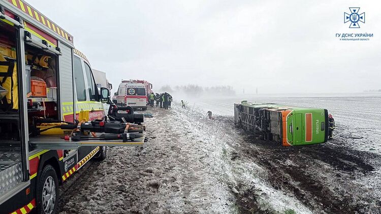 З'явилися подробиці ДТП під Хмельницьким, в якому автобус "Варшава-Одеса" перекинувся неподалік Волочиська до кювету.
