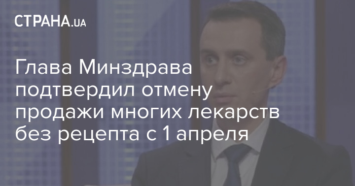 Міністр охорони здоров'я України Віктор Ляшко підтвердив, що з 1 квітня скасовується раніше чинний дозвіл на продаж ліків без рецептів на час воєнного стану.