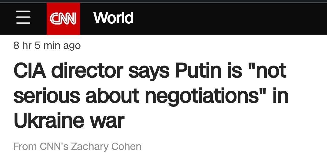 У ЦРУ вважають, що у зв'язку з таким ставленням Путіна до переговорів, "український прогрес на полі бою, швидше за все, сформує перспективи дипломатії» для припинення конфлікту, що триває".