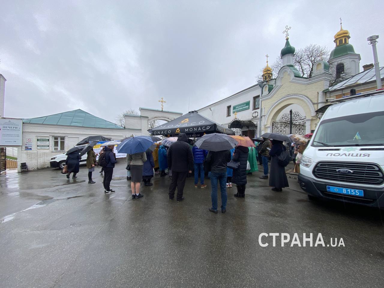 Зараз біля головного входу Лаври йде богослужіння парафіян УПЦ.