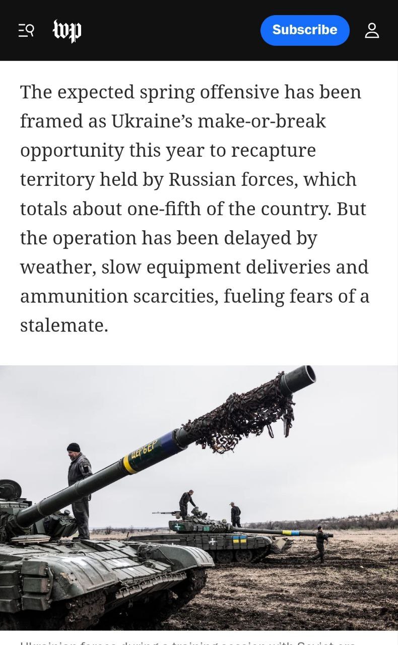 «Але операцію було відкладено через погоду, повільне постачання обладнання та брак боєприпасів, що посилило побоювання тупикової ситуації. Ще більше ускладнює заплановану контратаку витік десятків американських військових та розвідувальних документів, у тому числі багатьох подробиць про стан ЗСУ та їхні можливості», – пише видання.