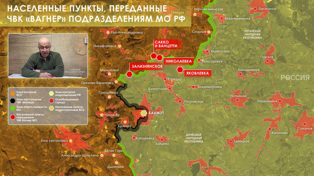 Виходячи з неї, «вагнерівці» тепер воюють лише в самому Бахмуті, а також на південному та північному фланзі на захід від нього. А напрямок на Сіверськ перейшов до ЗС РФ.