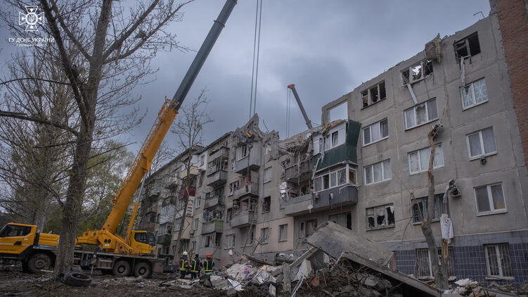 Нагадаємо, житловий мікрорайон Слов'янська напередодні потрапив під російський ракетний удар. В одному із пошкоджених багатоповерхових будинків ударом знесло кілька верхніх поверхів.