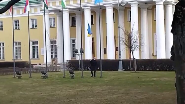 Український прапор був зірваний із флагштока біля Таврійського палацу в центрі Санкт-Петербурга.