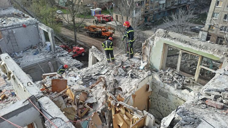 Нагадаємо, 14 квітня житловий мікрорайон Слов'янська потрапив під російський ракетний удар. В одному із пошкоджених багатоповерхових будинків обстрілом знесло кілька верхніх поверхів.