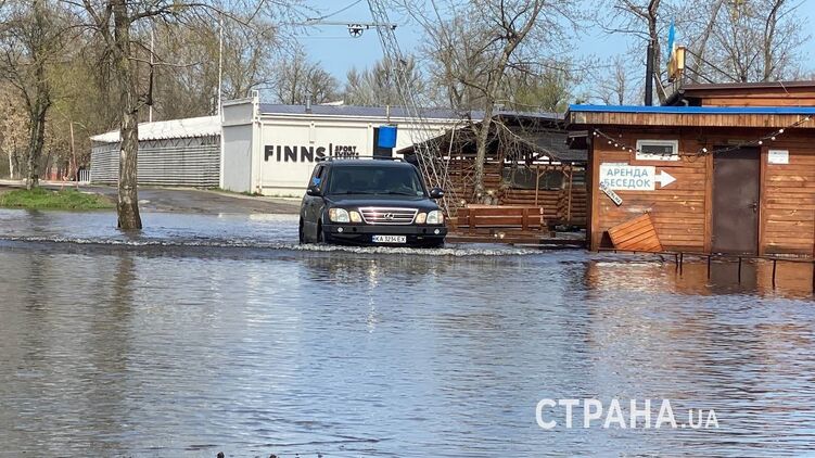 Під водою також опинилися майданчики для паркінгу автомобілів. Деякі кияни на таких парковках влаштували цілу розвагу катаючись тут на автомобілях. А хтось ловить навіть рибу.