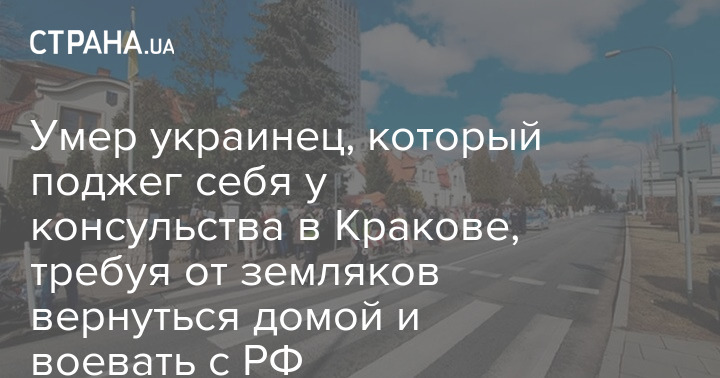 62-річний чоловік, який 13 квітня підпалив себе біля консульства України у Кракові, помер. Про це повідомило радіо RMF24.