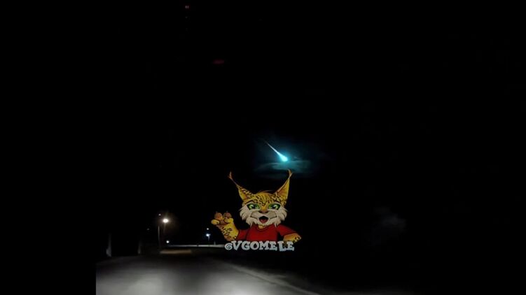 У Білорусі на камери автомобільного відеореєстратора потрапив об'єкт, схожий на метеорит із зеленим слідом за ним, який учора бачили мешканці Київської області.