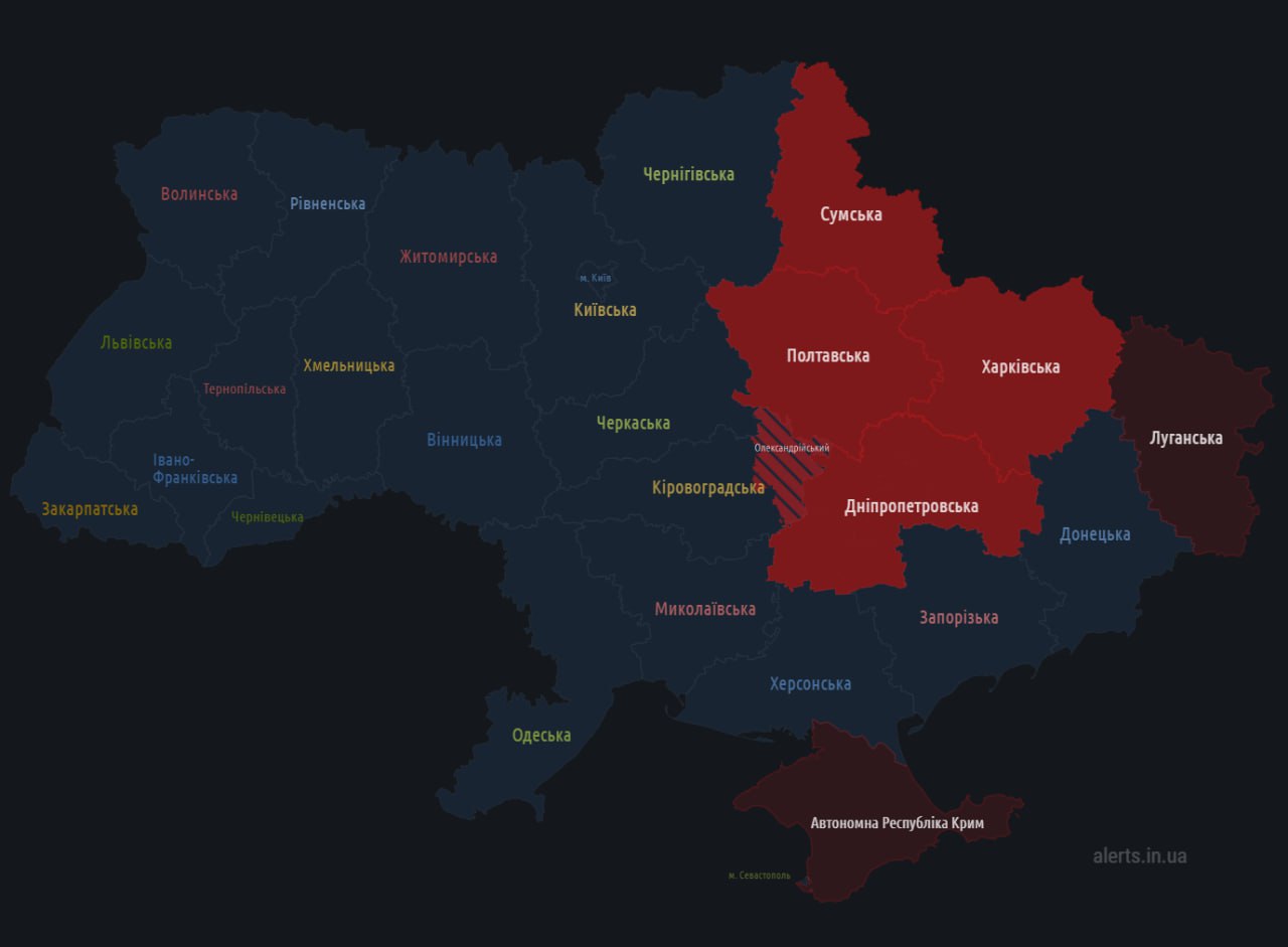09.12 Повітряну тривогу оголошено у Харківській, Сумській, Полтавській та Дніпропетровській областях.