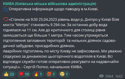 Проте до критичної позначки у столиці ще понад 1 метр. Аварійних підтоплень у Києві не фіксували.