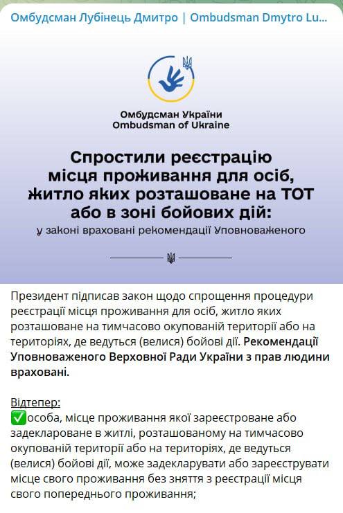 Про це повідомив омбудсмен Дмитро Лубінець.
