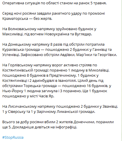 Війна в Україні триває вже 436-й день. Ми слідкуємо за новинами 5 травня у своєму онлайні.