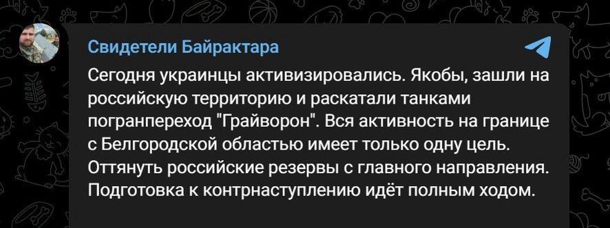 Активну публікацію інформації про це в Україні російські телеграм-канали, як і раніше, називають "операцією з дезінформації" з метою спонукати російське командування перекидати під Білгород додаткові підрозділи з напрямків, де ЗСУ готують головний удар. А також перебити інформаційний ефект від заяв РФ про "взяття Бахмута".
