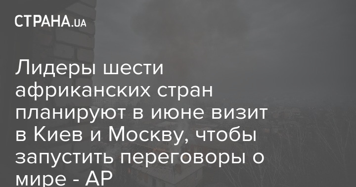 Делегація лідерів шести африканських країн планує у червні відвідати Київ та Москву, щоб ініціювати мирні переговори.