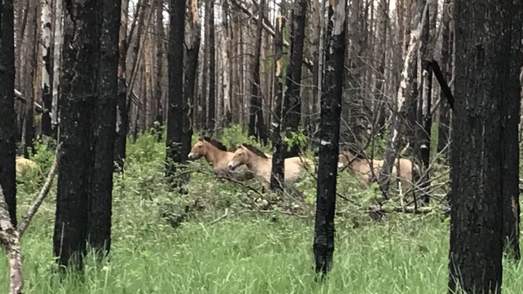 Дикі коні Пржевальського стійко асоціюються зі степами чи напівпустель. Але, як виявляється, ці копитні успішно пристосовуються до різних умов. Вони чудово почуваються на території Чорнобильського заповідника: і не тільки на луках і колишніх полях, що напівзаросли чагарниками, а й у великих лісових масивах із буреломами та постпірогенними чагарниками.
