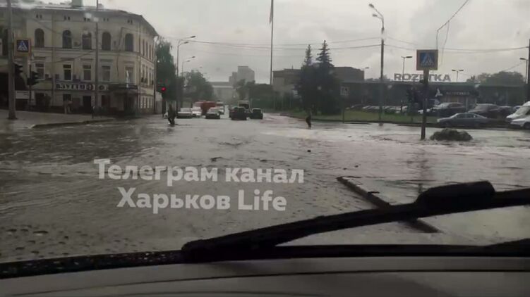 У Харкові вулиці перетворилися на річки після дощу. Скріншот відео
