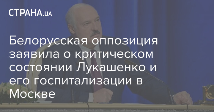 Білоруська опозиція заявила, що президента Білорусі Олександра Лукашенка серйозно хворіють і госпіталізовано в Москві. Один із представників опозиції, кандидат у президенти Валерій Цепкало, сказав, що глава держави перебуває "у критичному стані".