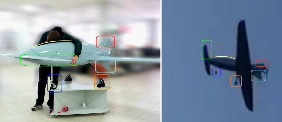 Військовий експерт Юліан Репке, вивчивши різні фото- та відеоматеріали, відзначає схожість цього дрона з тими, що були зняті на відео в небі над Москвою (на фото праворуч).