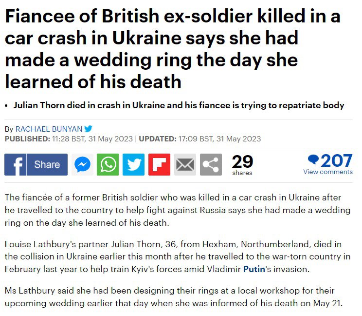 "Він вірив у правильність своїх намірів і поїхав до України, знаючи, що його вміння як ветерана британської армії принесуть користь", - розповіла про місію загиблого снайпера його наречена Луїза.