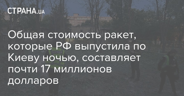 Загальна вартість ракет, які РФ випустила на Києв вночі, становить майже 17 мільйонів доларів