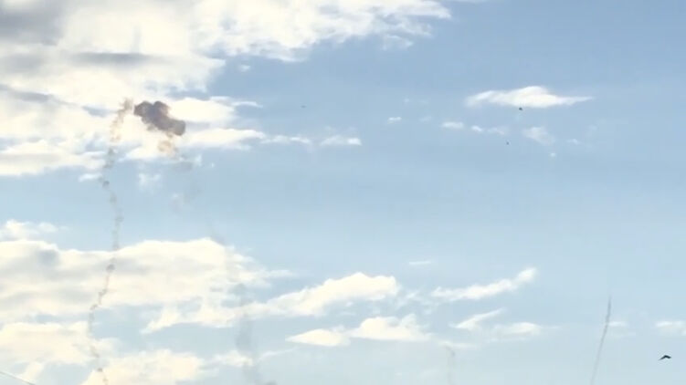 Місцеві жителі, що гуляють берегом моря, знімають відео слідів роботи ППО в небі. Слідів дуже багато.