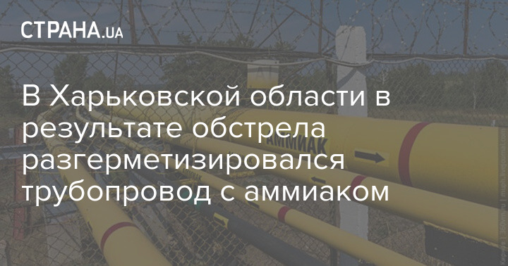 У Куп'янському районі Харківської області внаслідок обстрілу пошкоджено трубопровід з аміаком, відбулася його розгерметизація.