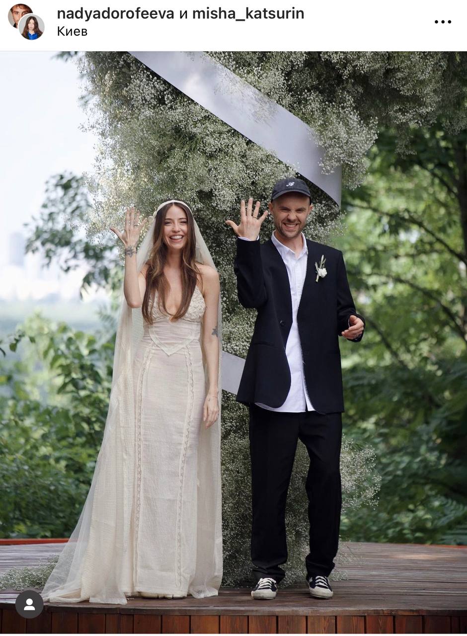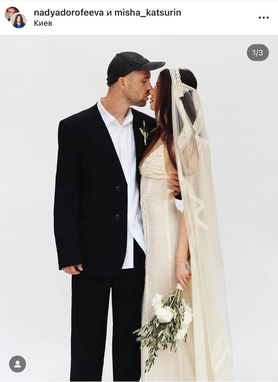 "Поговорюють, Кацурін та Дорофєєва таємно одружилися. Не знаємо, правда це чи ні, але фотки такі в телефонах у нас є", - підписали Дорофєєва і Кацурін знімки, на яких зображені у весільному вбранні та з обручками.