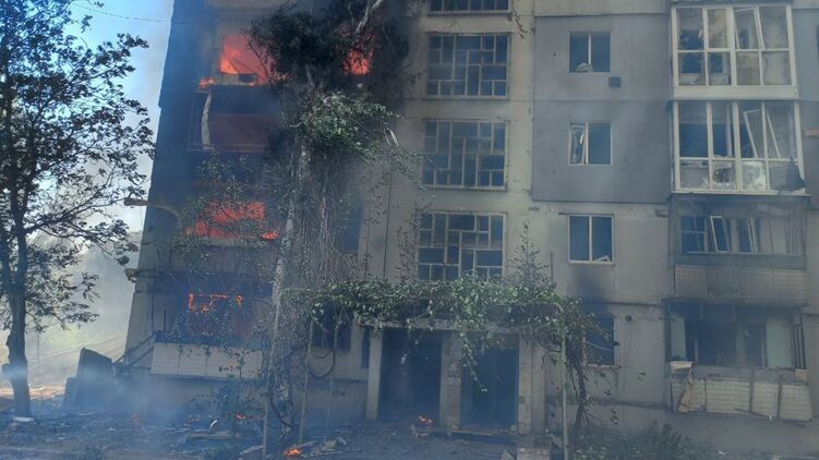 В Оріхові на Запорізькому напрямку від обстрілу спалахнув дев'ятиповерхівка.