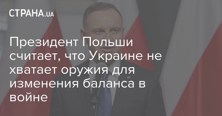 "У України недостатньо зброї, щоб змінити баланс у війні і здобути гору. І ми знаємо це, тому що зараз вони не в змозі провести рішучий контрнаступ проти російських військ. Коротше кажучи, їм потрібна додаткова допомога", – сказав Дуда.