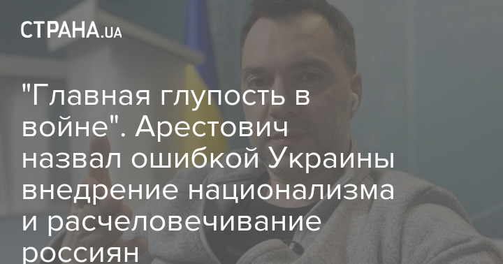 Колишній радник Офісу президента Олексій Арестович назвав помилкою України політику щодо "розлюднення" росіян та впровадження українського націоналізму.