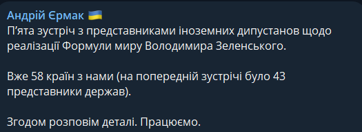 Раніше глава Офісу президента України Андрій Єрмак визнав, що на переговорах у Саудівській Аравії не всі країни погодились із "формулою світу" української сторони. За його словами, згоди не вдалося досягти з країнами глобального Півдня щодо "важких пунктів" - наприклад, про відповідальність Росії.
