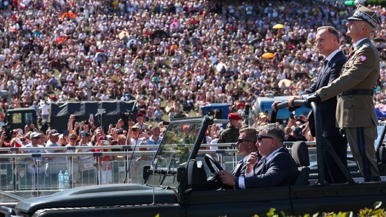 Президент Польщі Анджей Дуда бере участь у військовому параді. Фото польських ЗМІ