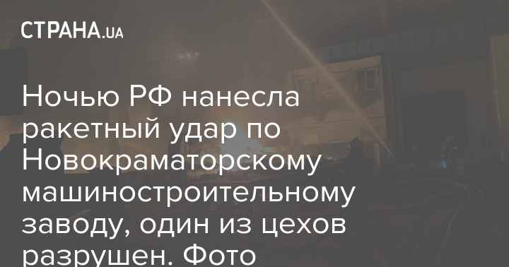 Вночі росіяни завдали ракетного удару по Новокраматорському машинобудівному заводу. Про це повідомляє Донецька ОВА.