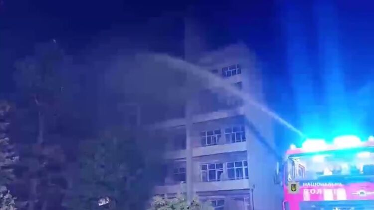 Зважаючи на кадри, горить пансіонат. Над дахом споруди піднімається дим, видно, що у вікнах будівлі вибиті шибки, з віконних прорізів виривається полум'я. Із пожежею борються працівники ДСНС.