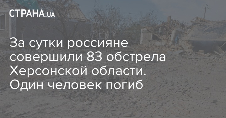 Минулої доби війська РФ здійснили 83 обстріли Херсонської області, випустивши 332 снаряди з мінометів, артилерії, "Градів", танків, БПЛА та авіації. Містом Херсон ворог випустив 28 снарядів.