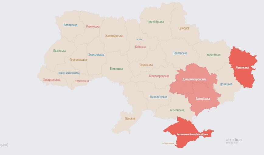 07.55 Тривога у Запорізькій та Дніпропетровській областях.