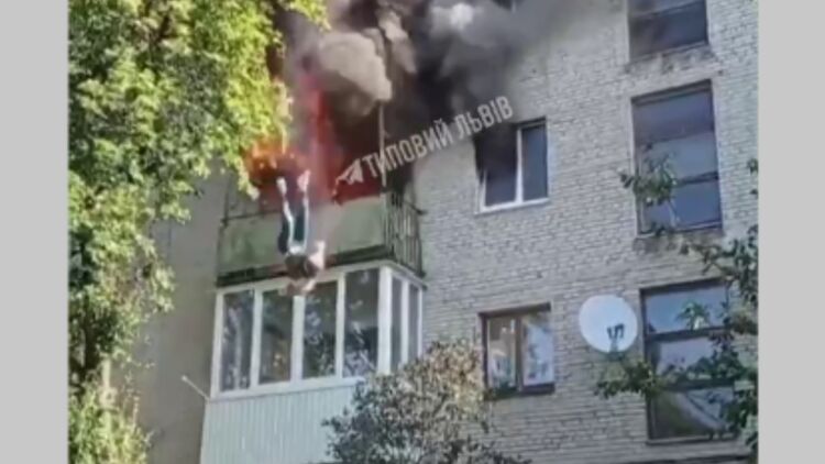 У Львові чоловік вистрибнув із вікна верхнього поверху п'ятиповерхівки, рятуючись від пожежі. Відео