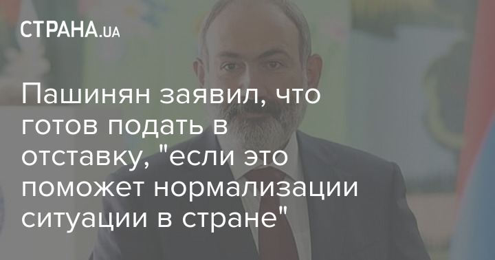 Прем'єр-міністр Вірменії Нікол Пашинян заявив, що готовий подати у відставку "якщо це допоможе нормалізації ситуації в країні".