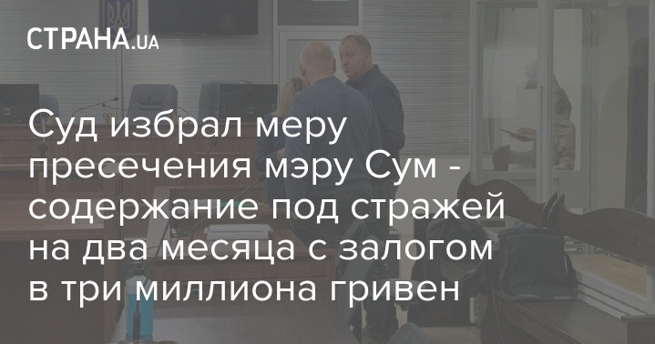 Вищий антикорупційний суд (ВАКС) обрав запобіжний захід меру Сум Олександру Лисенку, якого підозрюють в отриманні хабара. Суд узяв міського голову Сум під варту на 60 діб із можливістю вийти під заставу у три мільйони гривень.