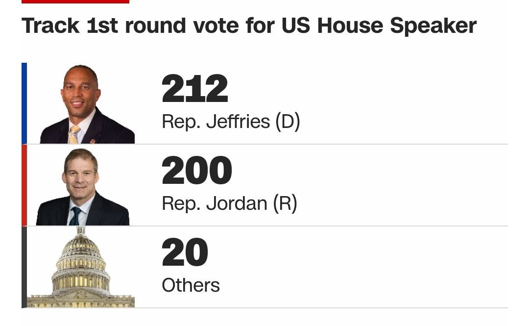 Це був перший тур голосування у Палаті представників. Крім Джордана, на посаду спікера висувався також демократ Хакім Джефріс, він набрав 212 голосів своїх однопартійців.
