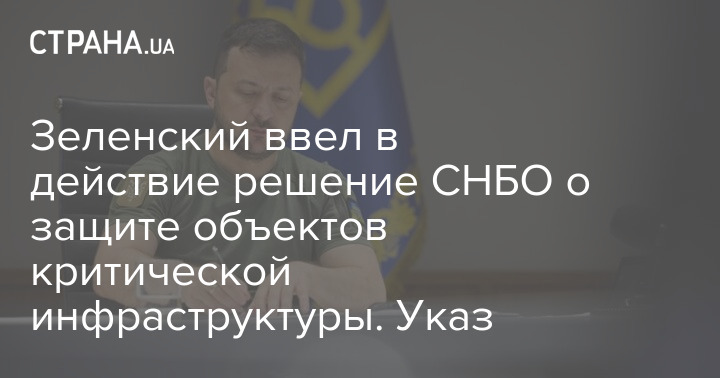 Президент України Володимир Зеленський ввів у дію рішення Ради національної безпеки та оборони (РНБО) щодо захисту об'єктів критичної інфраструктури.