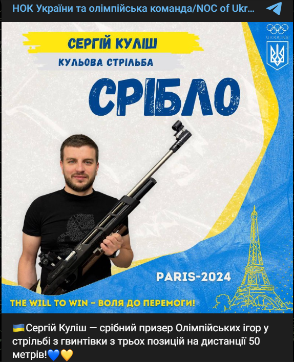Україна виборола другу медаль та перше срібло на Олімпійських іграх 2024 року. Сергій Куліш посів друге місце у стрільбі з малокаліберної гвинтівки із трьох положень.