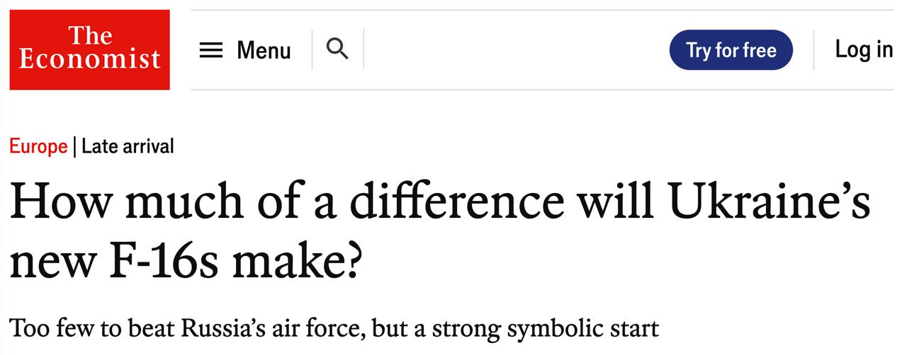 Опитані виданням експерти кажуть, що передача перших літаків швидше принесе "підвищення морального духу", аніж практичну користь на полі бою. А для локальної переваги у повітрі та підтримки наземного наступу потрібно не менше 12 ескадрилій з 18 літаками у кожній.