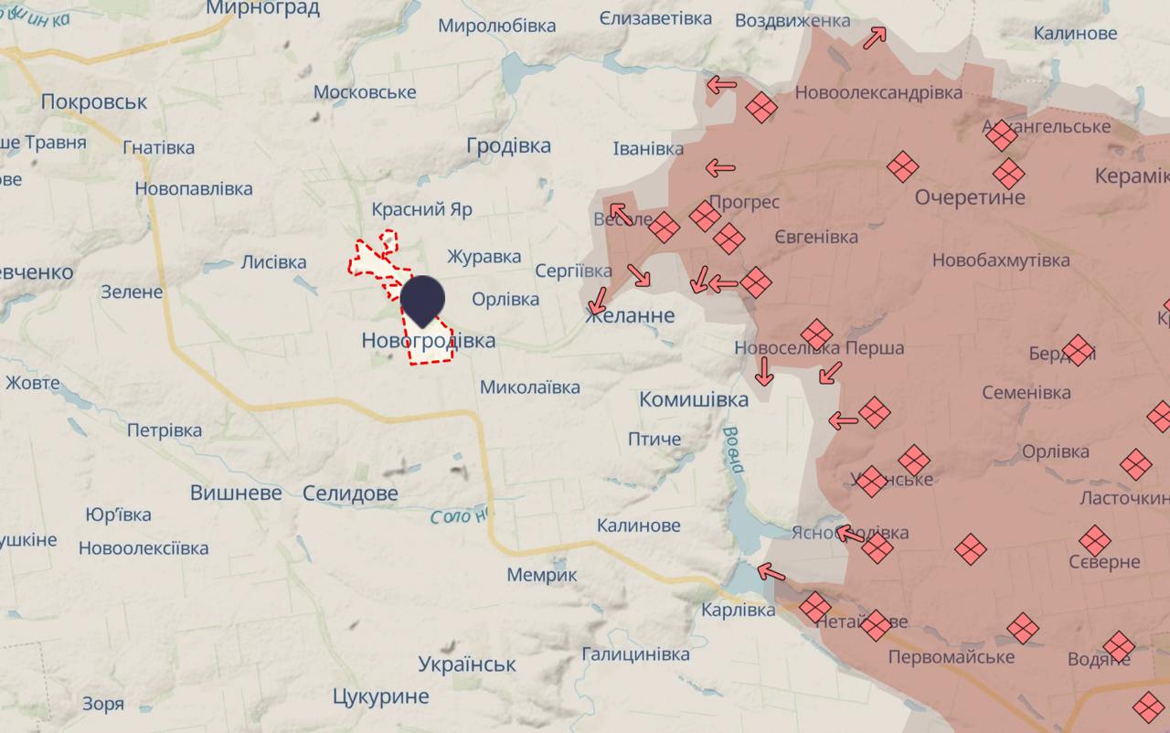 Як видно по карті, лінія фронту зараз наближається до Гродівки та Новогродівки.