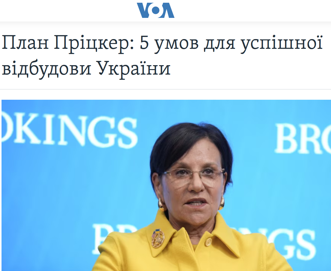 Пенні Пріцкер, яка залишає посаду спецпредставника Сполучених Штатів з питань відновлення України, озвучила свій план економічного піднесення країни.