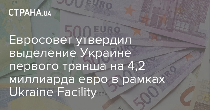 Рада ЄС затвердила виділення Україні першого траншу на 4,2 мільярди євро в рамках Ukraine Facility.