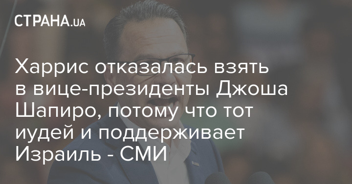Харріс відмовилася взяти у віце-президенти Джоша Шапіро, бо той юдей і підтримує Ізраїль - ЗМІ