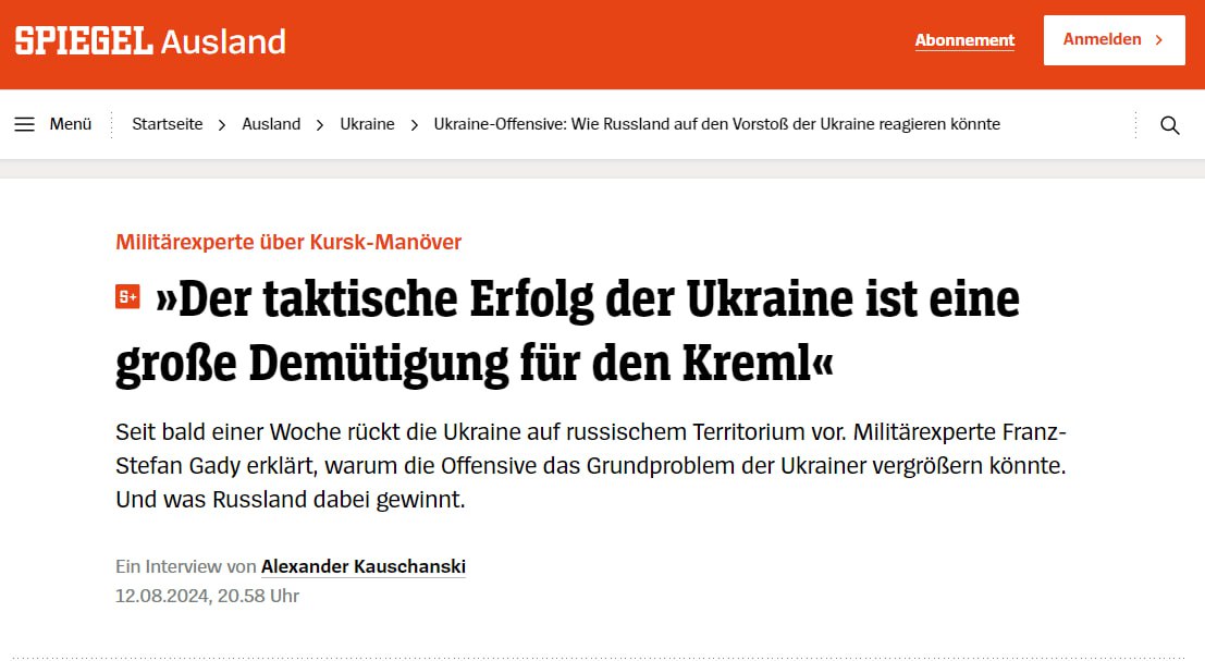 Таку думку висловив військовий експерт Франц Стефан Гаді в інтерв'ю німецькому журналу Der Spiegel.