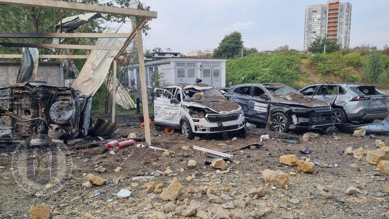 На паркінгу пошкоджено п'ять автомобілів. Поруч із місцем удару величезна вирва.