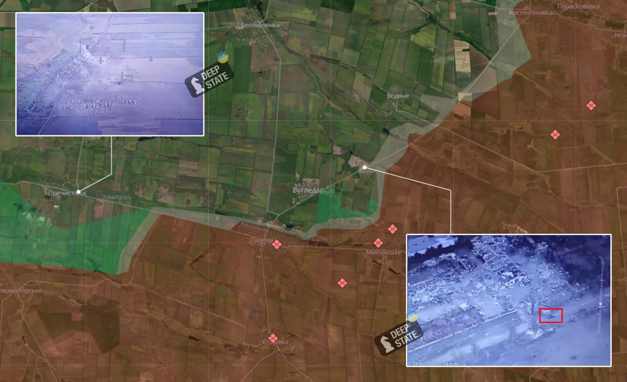 Шахта знаходиться на схід від Вугледару. Також вони просунулися на захід від міста – біля Пречистівки.